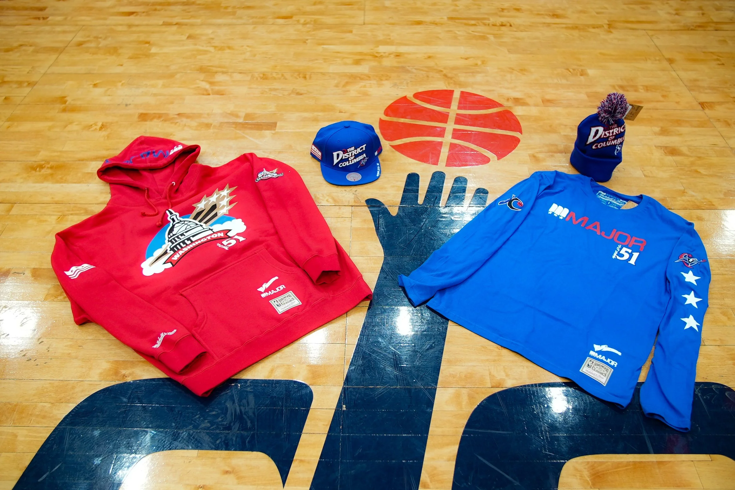 The shorts and the long sleeve t-shirts feature the 3 stars that was displayed prominently on the game shorts of the Washington Bullets, which is prominent in our city’s flag. The same 3 stars are also featured in MAJOR’s logo, as the allegiance to our city is at the forefront of both the Wizards and MAJOR.